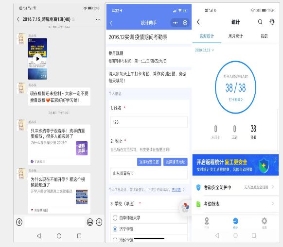 关注学生身心健康,加强日常管理,做好心理疏导。坚持线上考勤,确保联系到每一位分布在全省各地的学生,建立学生每日健康跟踪档案,实时掌握学生日常考勤、心理建设和身体健康报告,在线分享疫情防控期间防护措施、应对策略等知识,帮助学生消除排解心理恐慌与焦虑。