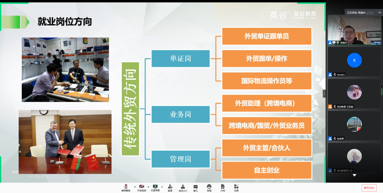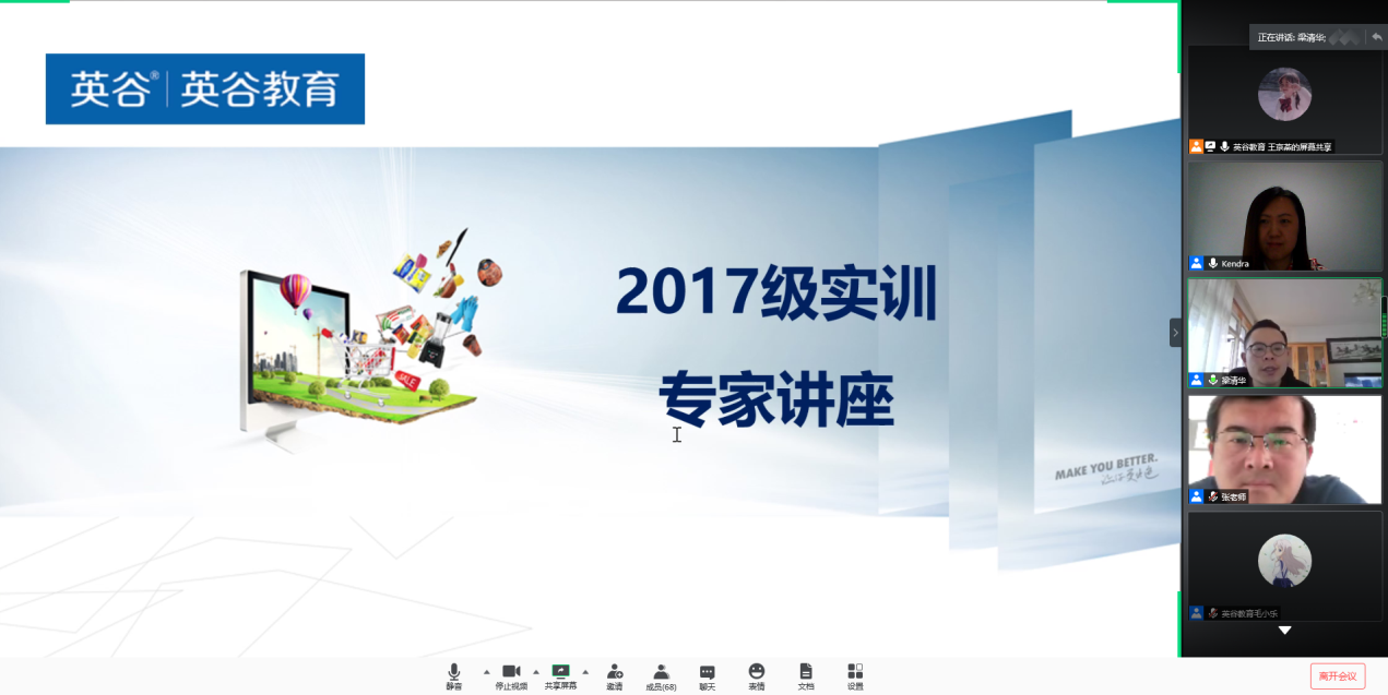 为了进一步做好2017级英语专业跨境电子商务方向学生的实训工作,5月14日上午9:00-11:30,外国语系联合青岛英谷教育科技公司通过腾讯会议举办了跨境电商实训讲座。外国语系副主任张颖、英谷公司讲师梁清华、王京燕以及2017级英语专业跨境电商方向全体学生参加了此次讲座。讲座由辅导员张磊主持。