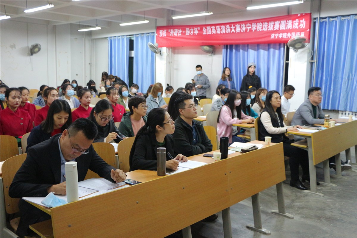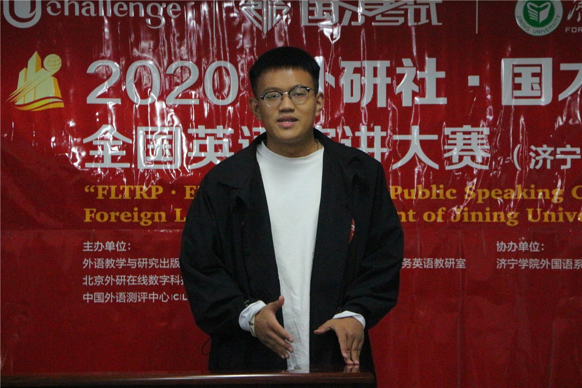 2020年10月19日晚,外国语系在3号楼A217教室成功举办了2020年“外研社•国才杯”演讲比赛济宁学院选拔赛决赛。外国语系党总支副书记许言强,副主任张颖出席本次比赛,李霄露、范莉、栾珍、杨永兵、肖冠华、仇丽丽、王倩倩7位老师担任本次比赛评委。
