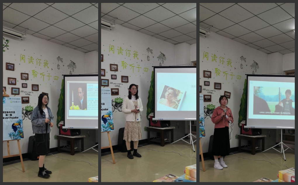 除了或智性或感性的读书分享,同学们还借《傲慢与偏见》电影版片段进行了精彩的配音表演,生动演绎了小说中主要人物的情感纠葛。在互动环节中,师生围绕小说的情节、人物及主题踊跃发言,气氛分外热烈。最后,张颖副主任做总结发言,鼓励师生“读书正当时,莫负好时光,让读书成为我们的一种生活方式,一种生活习惯”。