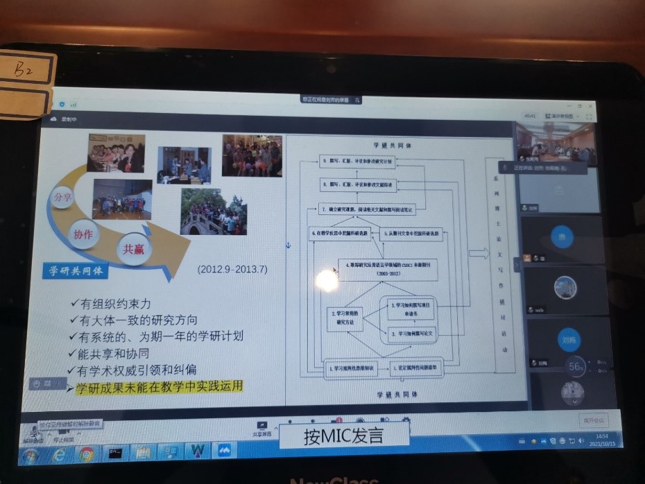 10月15日下午2:30,中国地质大学(武汉)安博站官网登录入口刘芳副教授应邀做客安博(中国)教师专业发展沙龙,并通过腾讯会议为我院师生做了题为“高校外语教师教学研共同体建设研究:理论与实践”的学术报告。报告由安博站官网登录入口副院长张殿海教授主持,校内外师生300多人参加了此次线上学术分享和讨论。