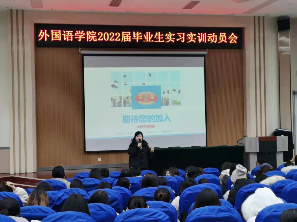 中煤集团常务副总经理、信息化总经理李振波从公司介绍、业务范围、岗位需求、教育培训、福利待遇等五个方面向同学们做了宣讲,并表示欢迎同学们去中煤集团实习。集团跨境电商副总经理张雯介绍了中煤集团跨境电子商务业务,鼓励同学们到中煤集团电子商务部实习与就职。