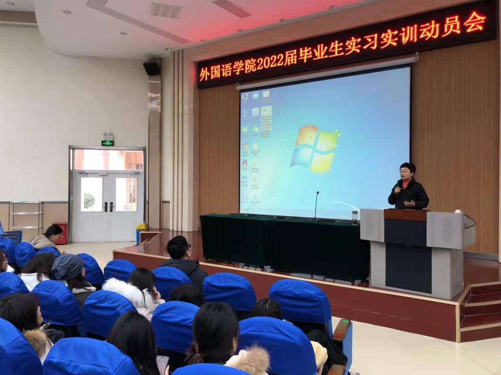 张殿海通过案例和举证对毕业论文撰写做了详细解读和进一步指导。许言强强调了实习实训对英语专业学生培养的重要意义,指出同学们在实习实训过程中要遵守纪律,高质量完成实习报告,要善于理论联系实际,在提升自己专业能力的同时,提高综合素质。闫彩霞对实习要求做了进一步部署,鼓励同学们在实习实训阶段多与导师沟通,充分发挥实习双导师制的优势,与企业接轨,与社会融合,在实践中锻炼自己。