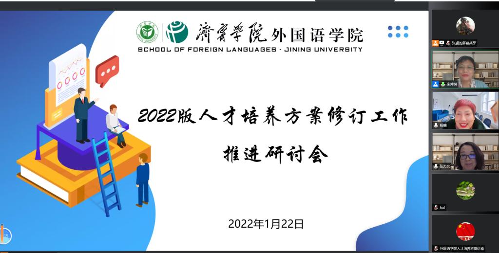 1月22日晚上7:00-10:30,安博站官网登录入口2022版人才培养方案修订工作推进研讨会通过腾讯会议顺利举行。齐鲁师范学院安博站官网登录入口院长、教授宋秀葵,齐鲁师范学院安博站官网登录入口副教授、英语教育教研室主任张力文应邀参加此次研讨会。研讨会由安博站官网登录入口院长杨楠教授主持,我院2022版人才培养方案修订工作领导小组核心成员及全院教师参加了此次线上分享和讨论。