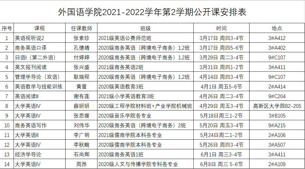 2月28日,安博站官网登录入口公布了本学期公开课安排表。为推动课堂教学改革的深化,保证教学质量的稳步提高,加强教师之间的交流互动,多年来,安博站官网登录入口始终坚持听课评课并构建了三级听课评课制度。分别是学院领导听课评课、学院教学督导听课评课和学院全体教师听课评课,既可以选择学院统一安排的公开课,也可以选择随机进课堂听课。每学期学院领导和教学督导至少需完成6节课听课,教师需完成4节课听课评课。三级听课制度下,每次听课后需要认真填写《听课记录表》,对教学态度、教学能力、教学效果等进行评价,同时指出授课教师在授课过程中的主要优点和存在问题,并提出建议,填完后将该表交秘书处统一汇总存档。坚持听课评课制度有效地促进了教学质量提升和教师之间的交流。