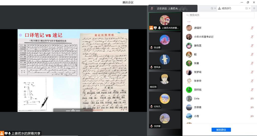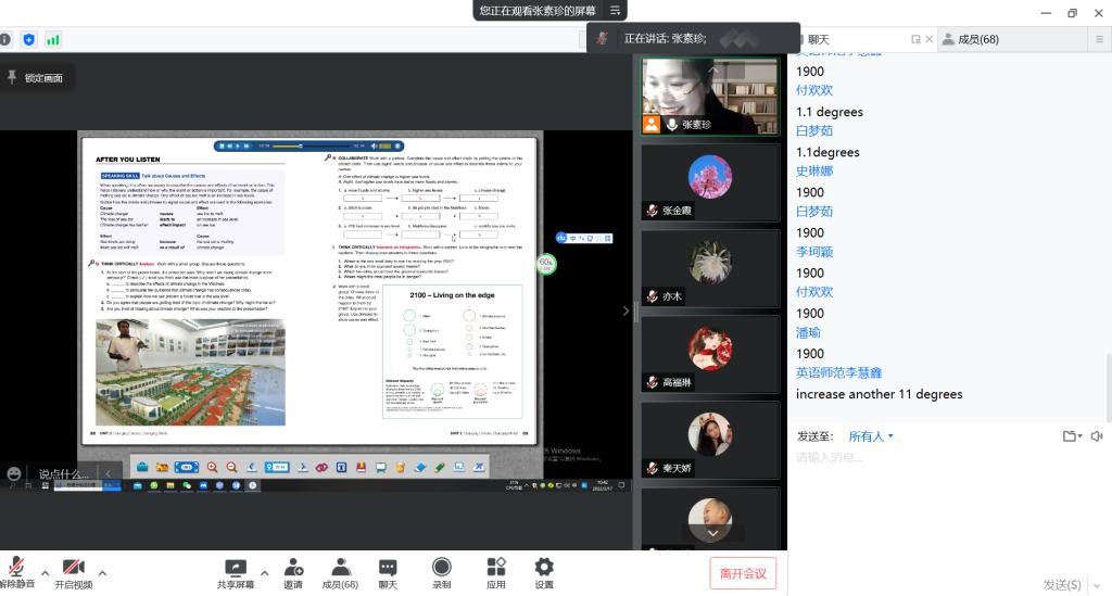 接着,张素珍老师结合所授课程《英语视听说2》从教学分析、教学策略、教学过程等方面分享了自己的教学设计。孔德婧老师围绕充分发挥学生主体作用,加强师生互动的教学理念,分享了《商务英语口译》里关于Note-taking章节的教学反思。学院教学督导充分肯定了两位老师的线上教学,认为她们的教学设计学生学情分析到位,教学思路清晰,课堂师生互动多样,课程思政做到了润物细无声。多位教师就线上教学好的做法,遇到的问题进行了热烈的探讨。新进教师代表刘伟华也表示,两位老师教学风格迥异,各有所长,让新进教师在教学方法和教学反思方面收获颇丰。