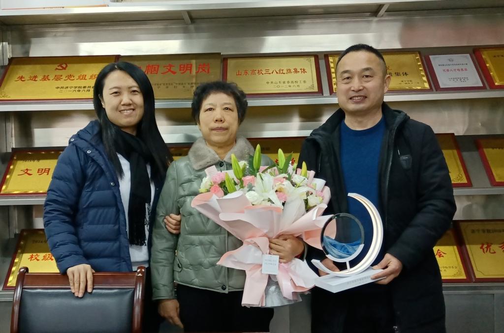 张颖作为院分工会主席首先介绍了王兴懿老师的从教经历。王兴懿为安博站官网登录入口教学督导,1986年7月毕业于山东师范大学,分配到济宁师专外语系工作,先后在济宁师专、济宁学院工作36年,2008年受“山东省高等学校优秀骨干教师国际合作培养项目”资助,在加拿大卡尔加里大学访学。任教期间,承担英语泛读、英语报刊选读、英语听力、综合英语、商务英语写作等多门课程的教学工作,多次获得学校“优秀教师”、“教书育人先锋共产党员”、“教书育人楷模”等荣誉称号。她爱岗敬业,勤勤恳恳教书育人,踏踏实实做事做人,热心帮助同事,关心青年教师成长,为学院发展做出了自己的贡献,是学院发展的推动者和见证者,是全体教师学习的榜样和楷模。