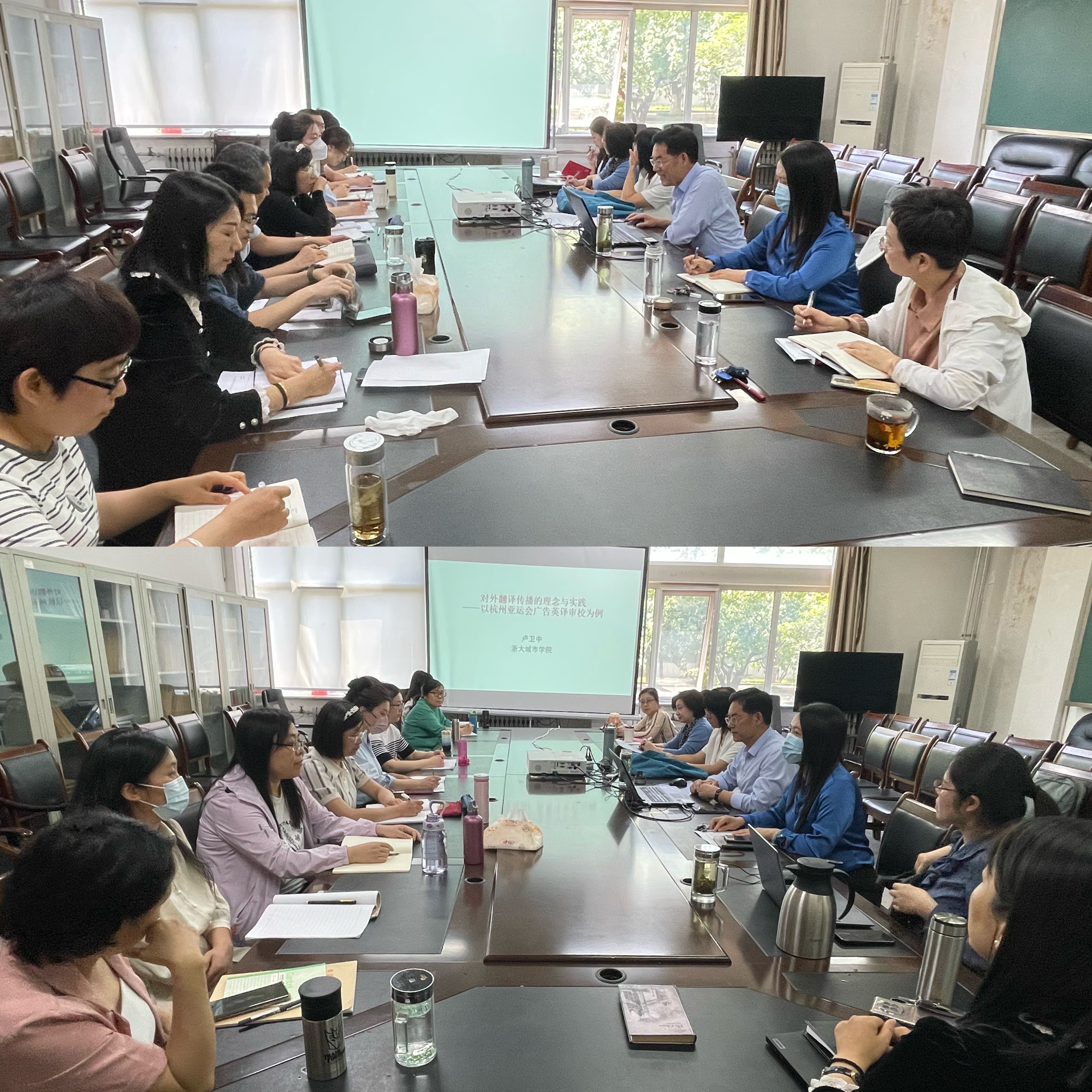 5月13日,安博站官网登录入口名誉院长、杭州市领军人才、钱塘学者、曲阜师范大学翻译学院创始院长卢卫中教授来校做专题讲座,并就课程建设、高质量论文撰写、课题申报等进行专项指导。活动由安博站官网登录入口副院长张颖主持,安博站官网登录入口博士、在读博士、高级职称教师及骨干教师参加活动。