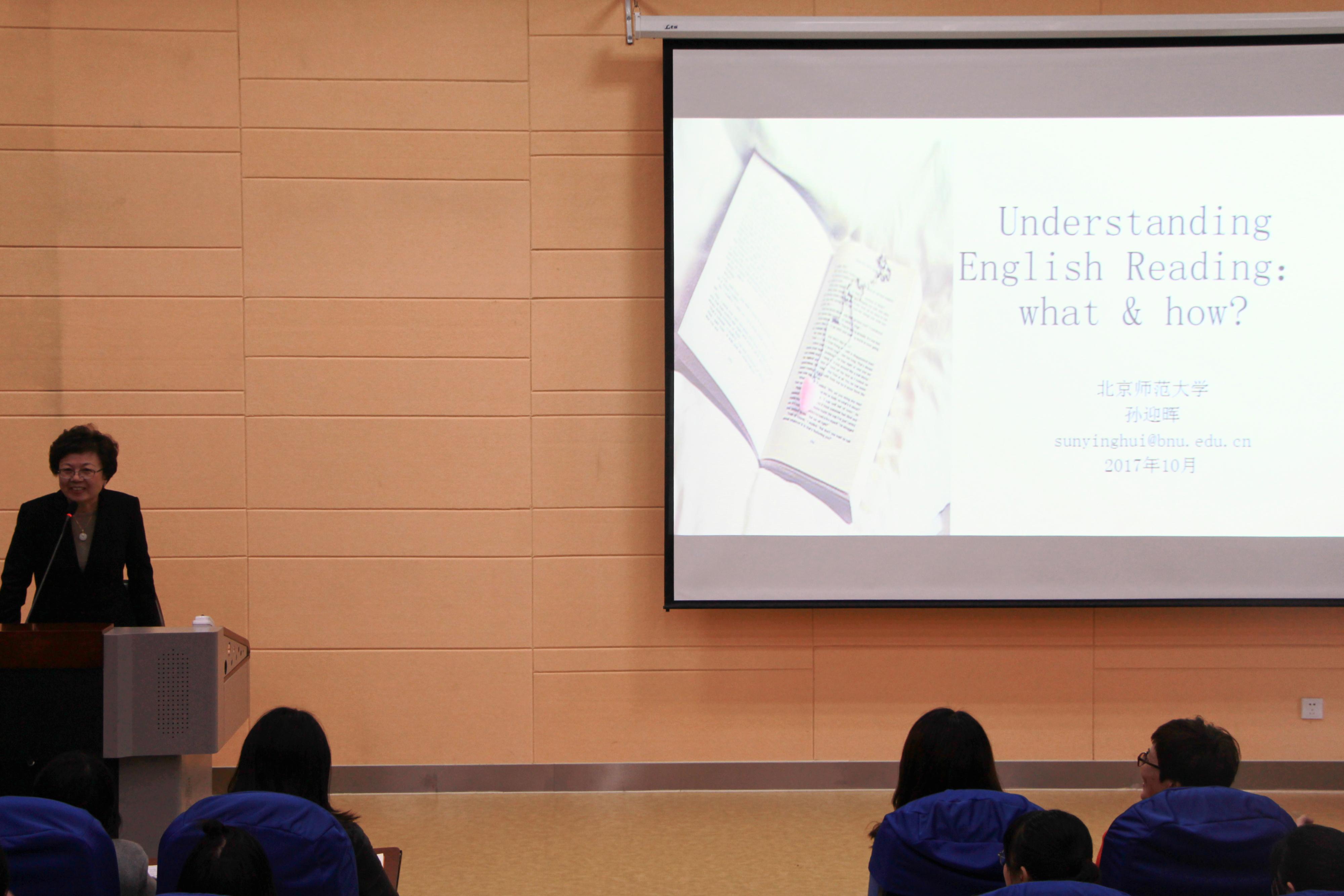 11月10日下午,北京师范大学博士生导师孙迎晖教授在我校2号教学楼B101报告厅为外国语系全体师生做了题为“Understanding English: What & How”的学术报告。报告会由外国语系副主任张颖主持。