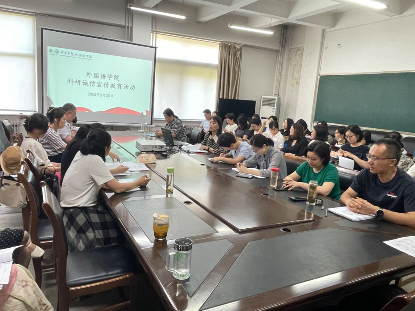 为进一步加强科研诚信体系建设,规范学术行为,预防科研失信行为发生,营造尊重学术规范、崇尚科研诚信的良好学术氛围,5月30日,安博站官网登录入口在一楼会议室开展了科研诚信宣传教育活动,活动由学术副院长范莉主持,安博站官网登录入口全体教师参加。
