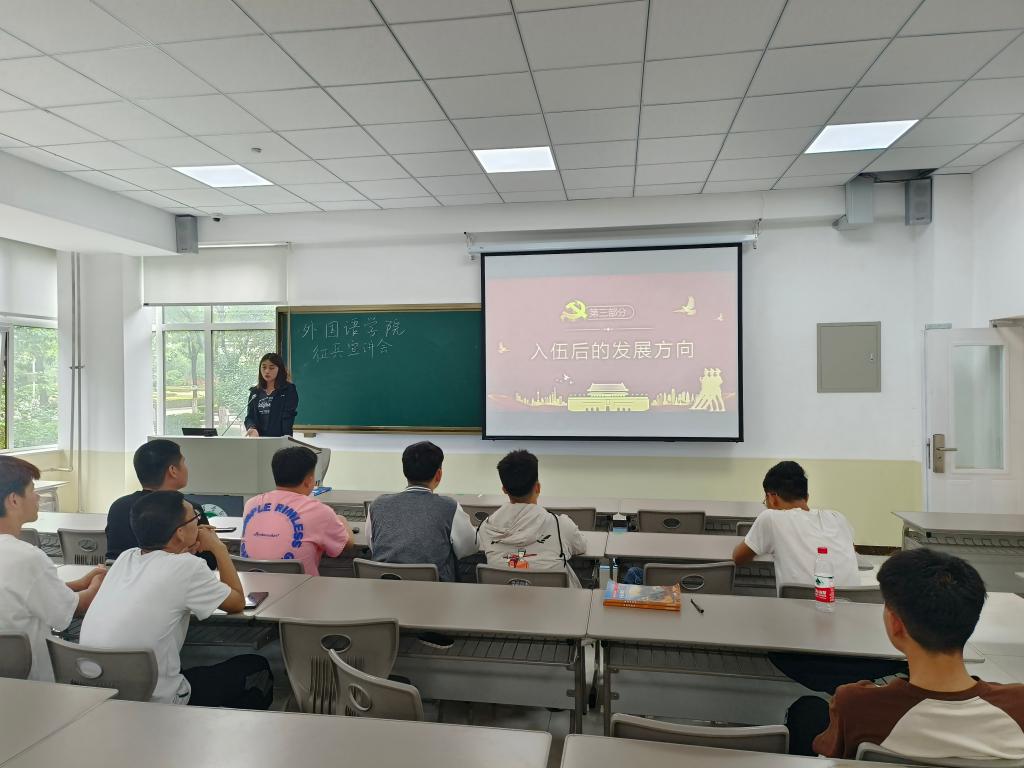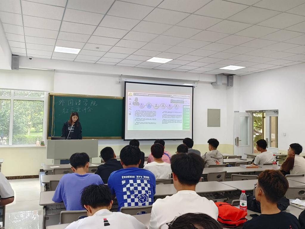 为加强征兵政策宣传,激发大学生参军入伍热情,进一步做好2023届毕业生应征入伍工作,5月29日下午,安博站官网登录入口在3A101教室邀请2020级英语教育退役大学生士兵翟传鑫同学开展征兵工作宣讲。安博站官网登录入口辅导员田清敏、冯占磊以及有意向入伍的同学参加会议。