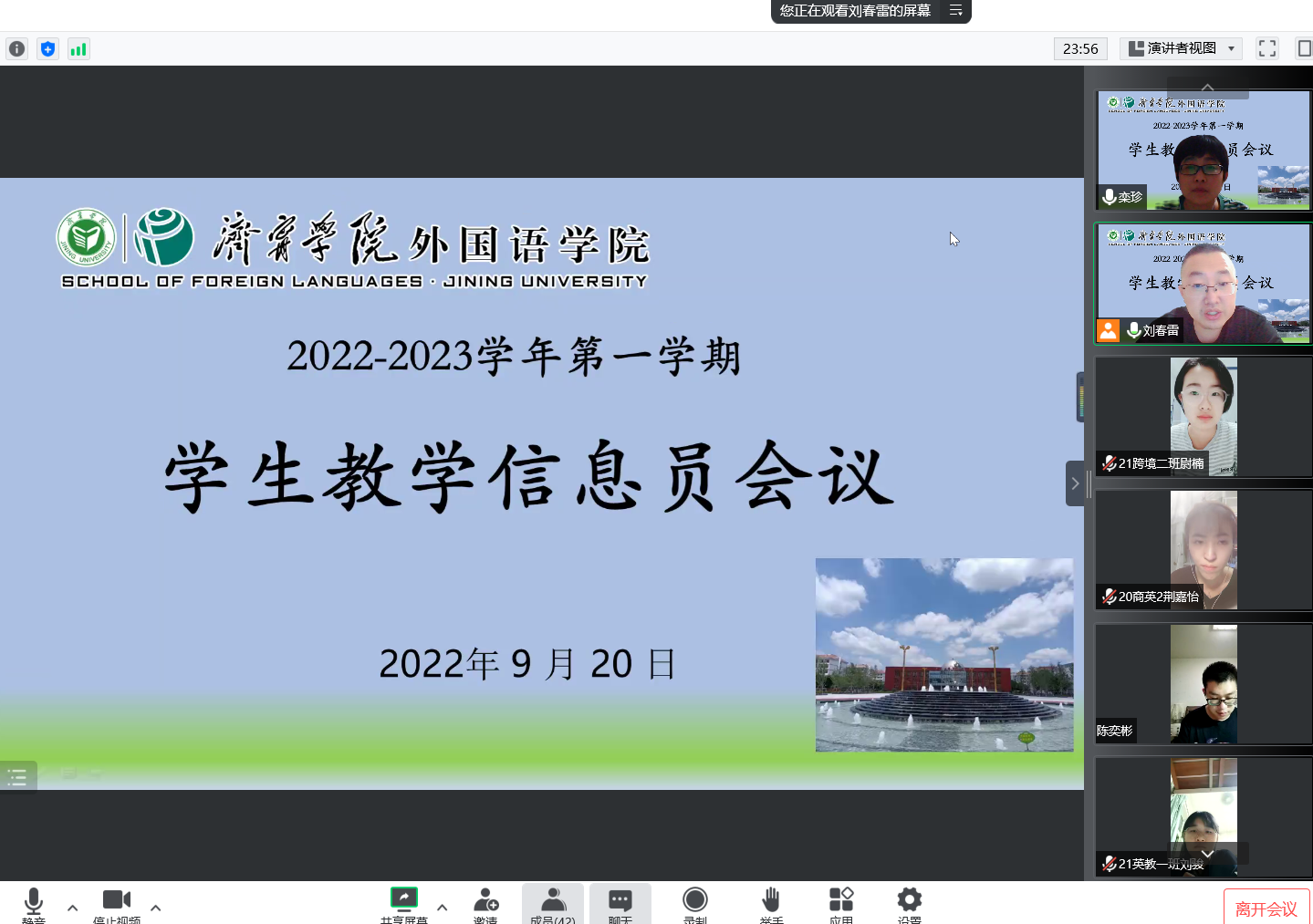 9月20日晚,安博站官网登录入口通过腾讯会议在云端召开学生教学信息员会议。会议由教学秘书栾珍、刘春雷老师主持,2019-2021级学生教学信息员以及2022级新生各班班助同学参加此次会议。
