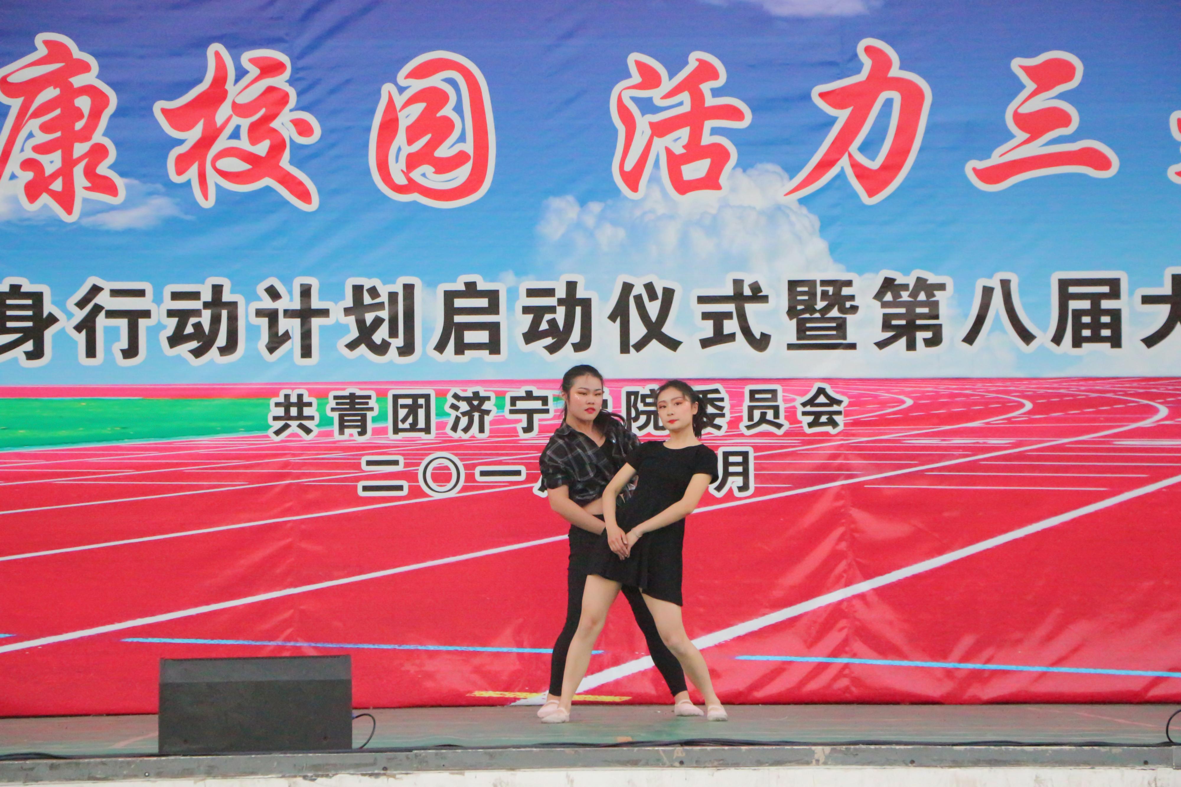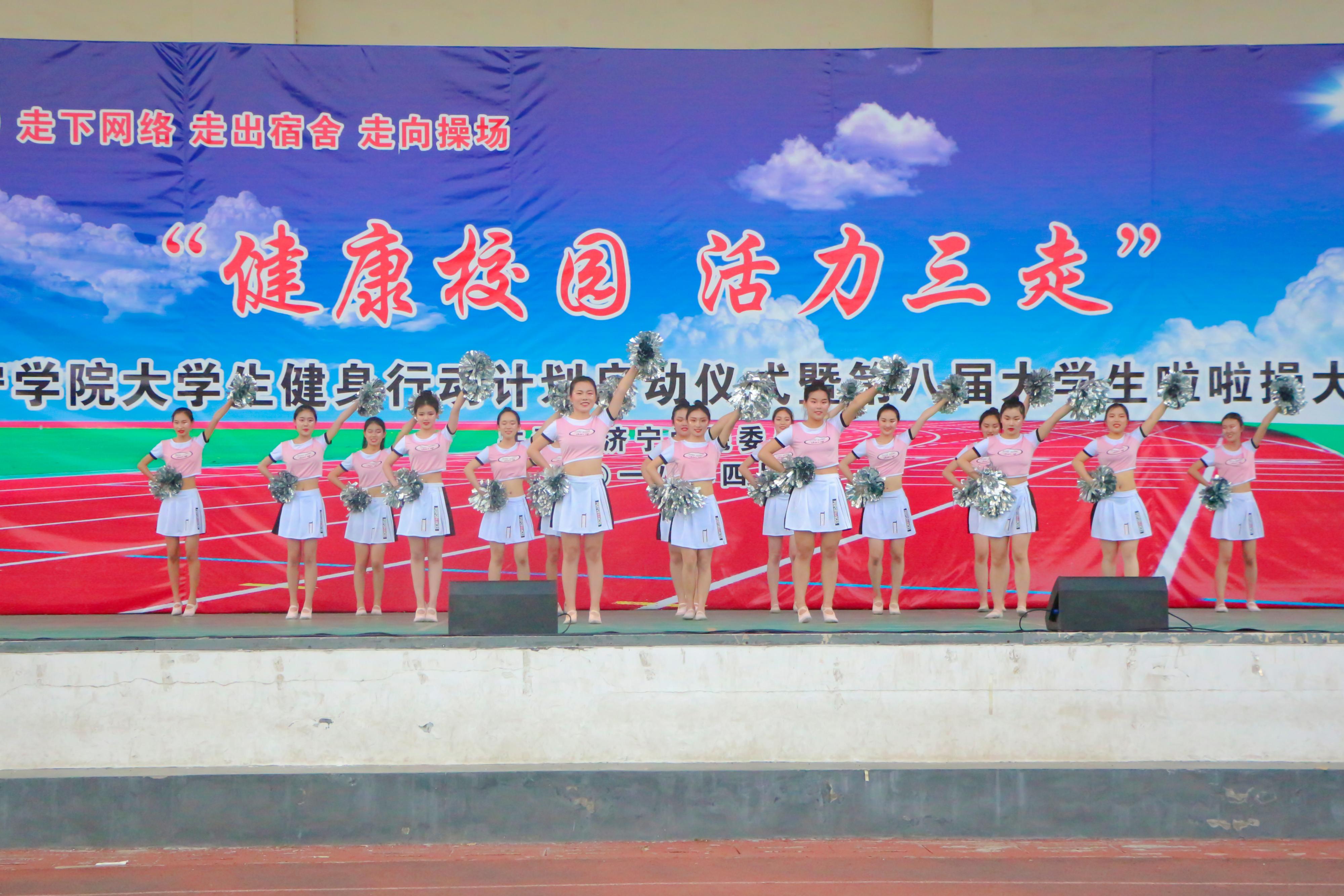 4月11下午4:30由济宁学院体育委员会主办,共青团济宁学院承办的济宁学院大学生健身行动计划启动仪式暨第八届大学生啦啦操大赛在西体育场隆重举行。济宁学院党委副书记马恩、学生工作处处长夏可树、团委书记马新蕾出席了启动仪式,各系书记、副书记和团总支书记也出席了此次大赛。