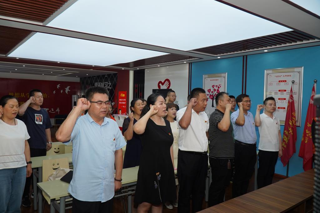 首先,姜璨致辞,希望同学们要学以致用,不断提高将书本知识转化为实践的能力和水平,在实践中展现出大学生良好素质和优良品质。她强调,作为一项提高大学生综合素质的社会实践活动,“三下乡”不但能够提升大学生社会实践能力和素质,而且为大学生了解国情开启了一扇窗口,同学们要扎根中国大地了解民情,通过社会实践坚定理想信念、站稳人民立场、练就过硬本领、投身强国伟业,把“三下乡”活动打造成为学子深入基层、服务人民、奉献社会的良好平台,希望同学们增强安全意识,牢固树立“安全第一”的理念,预祝活动取得圆满成功。接着,与会人员一起学习了《习近平总书记在庆祝中国共产党成立100周年大会上讲话》,总书记的讲话通篇闪耀着马克思主义的真理光芒,是给全体党员上的一堂生动深刻的党史教育课、初心使命课,也是向全世界的庄严宣示、向全体党员的伟大号召、对全国人民的广泛动员,大家一致表示,要深入学习贯彻习近平总书记重要讲话精神,在新征程上继承和发扬伟大建党精神,更好肩负起时代赋予的光荣使命,为实现中华民族伟大复兴贡献力量。最后,全体党员重温入党誓词,一起回忆入党宣誓时的庄严承诺和坚定决心。