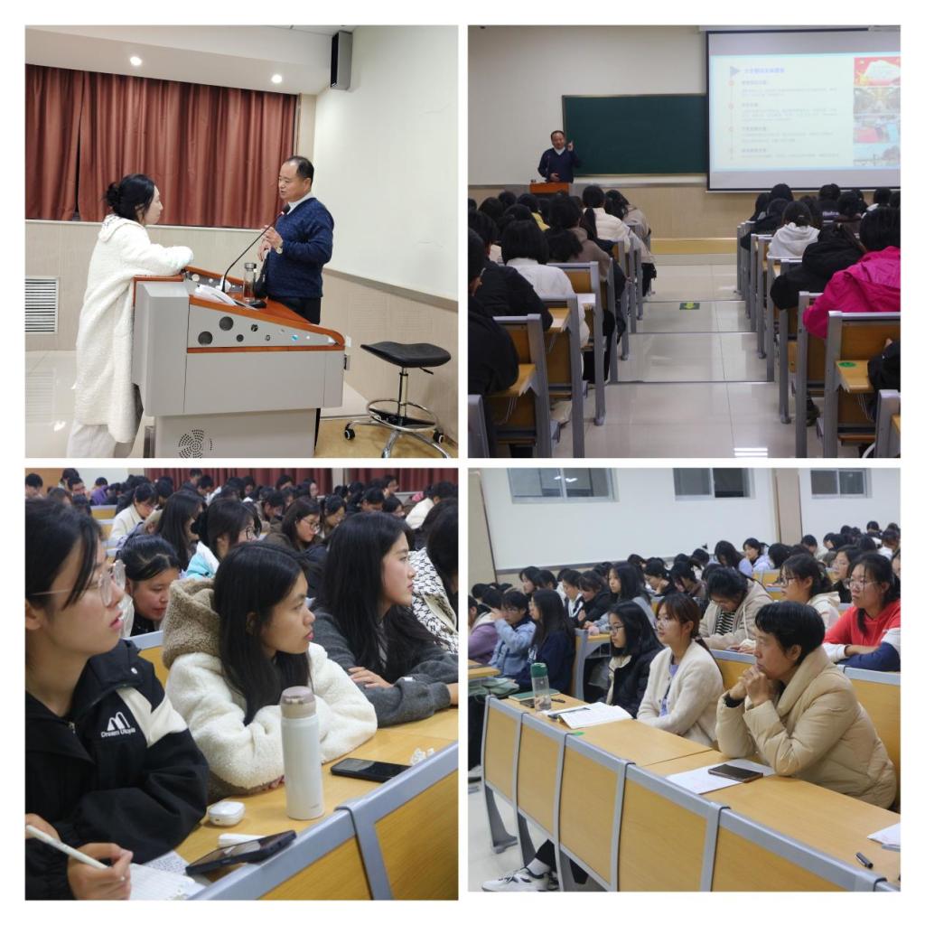 11月21日晚,安博站官网登录入口开展“名师•名校长进校园” 暨师范生从业技能培养工作坊第二十一期活动,本次活动由教务处和安博站官网登录入口联合主办,邀请了曲阜市教师教育发展服务中心初中英语教研员,曲阜市教育名师工作室管理办公室主任宋玉忠作了题为“规划精彩人生,打造锦绣前程—大学生职业生涯规划与发展前景分析与指导”的报告。报告会由安博站官网登录入口学术副院长闫彩霞主持,部分教师代表,2023级全体师范生300余人参加了此次活动。
