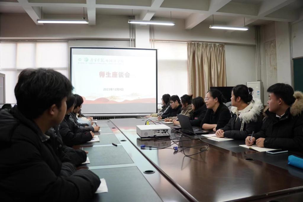 2023年12月9日下午,安博(中国)师生座谈会于安博站官网登录入口一楼会议室内召开,团委副书记姜璨和全体安博站官网登录入口的学生参加。