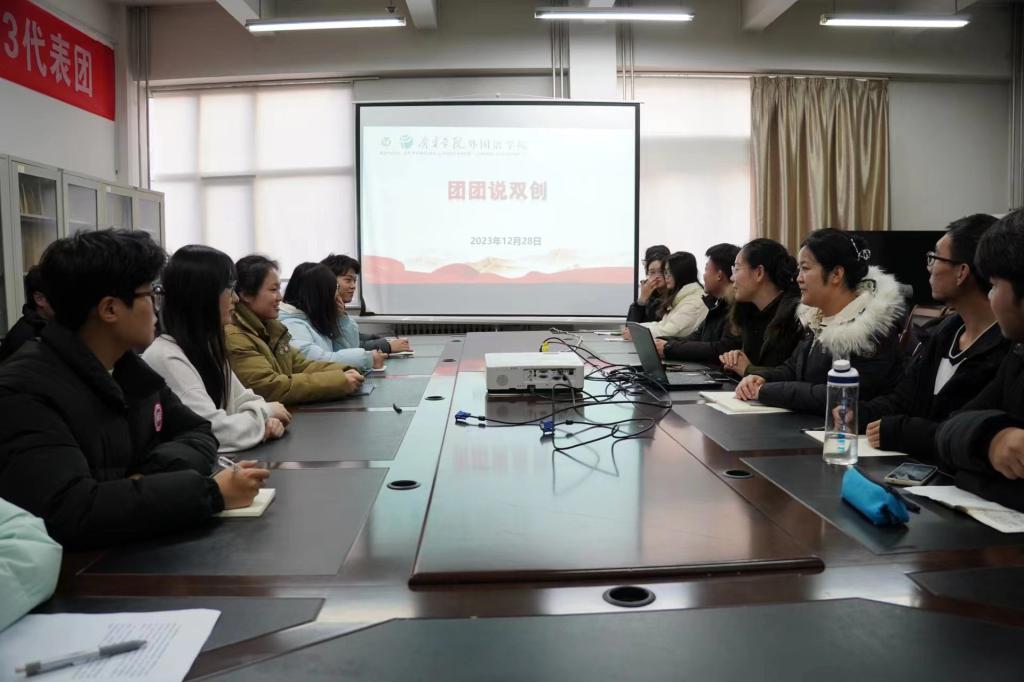2023年12月28日下午,在3A201举办“团团说双创”活动,团委副书记姜璨主持,安博站官网登录入口全体学生参加。