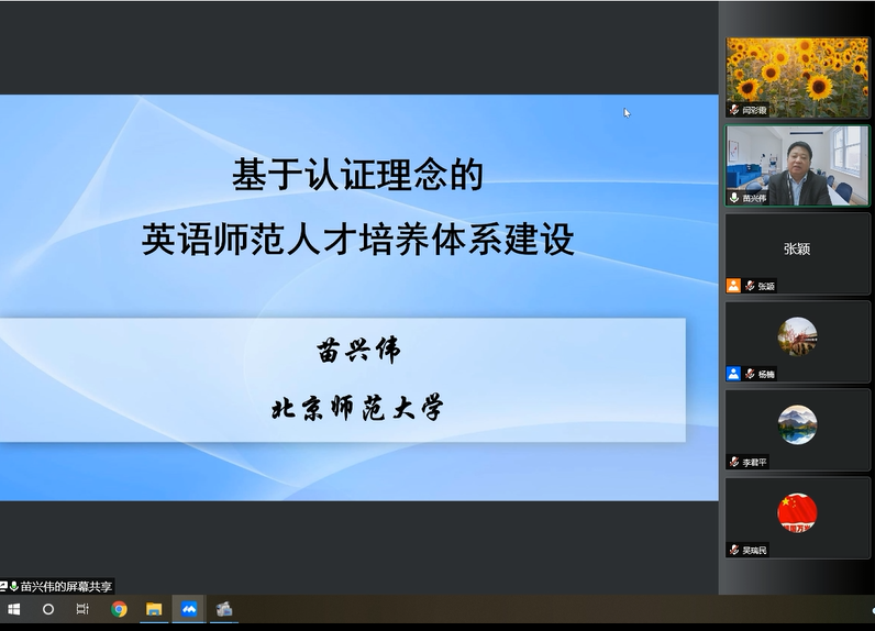 3月26日晚,安博站官网登录入口邀请北京师范大学外文学院院长苗兴伟教授作了题为“基于认证理念的英语师范人才培养体系建设”的讲座。因疫情缘故,本次讲座借助腾讯会议采取了线上讲座的形式。讲座由院长杨楠主持,外院全体教职工参加了本次讲座。