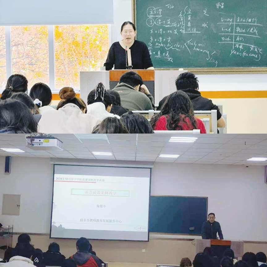 2024年11-12月,安博站官网登录入口先后邀请了五位中学英语教学名师和英语教研员进课堂,为英语师范专业学生开设了《中学教学案例行动研究》课程专题讲座。