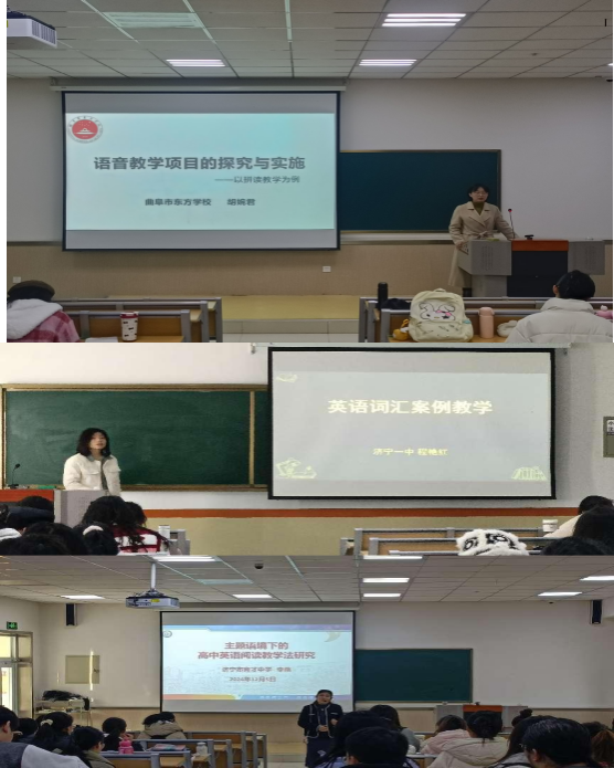 11月19日,曲阜市东方中学胡婉君老师做了题为“英语语音教学项目研究与实施”的讲座。胡老师对比了2011年和2022年《义务教育英语课程标准》中对英语语音的不同要求,剖析了初中生在语音、词汇学习方面以及初中英语教师在语音教学过程中存在的的常见问题,提出了新课标下的语音教学目标。